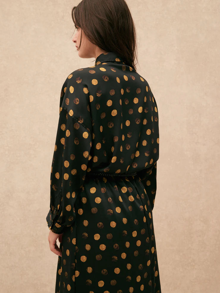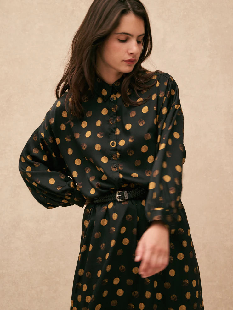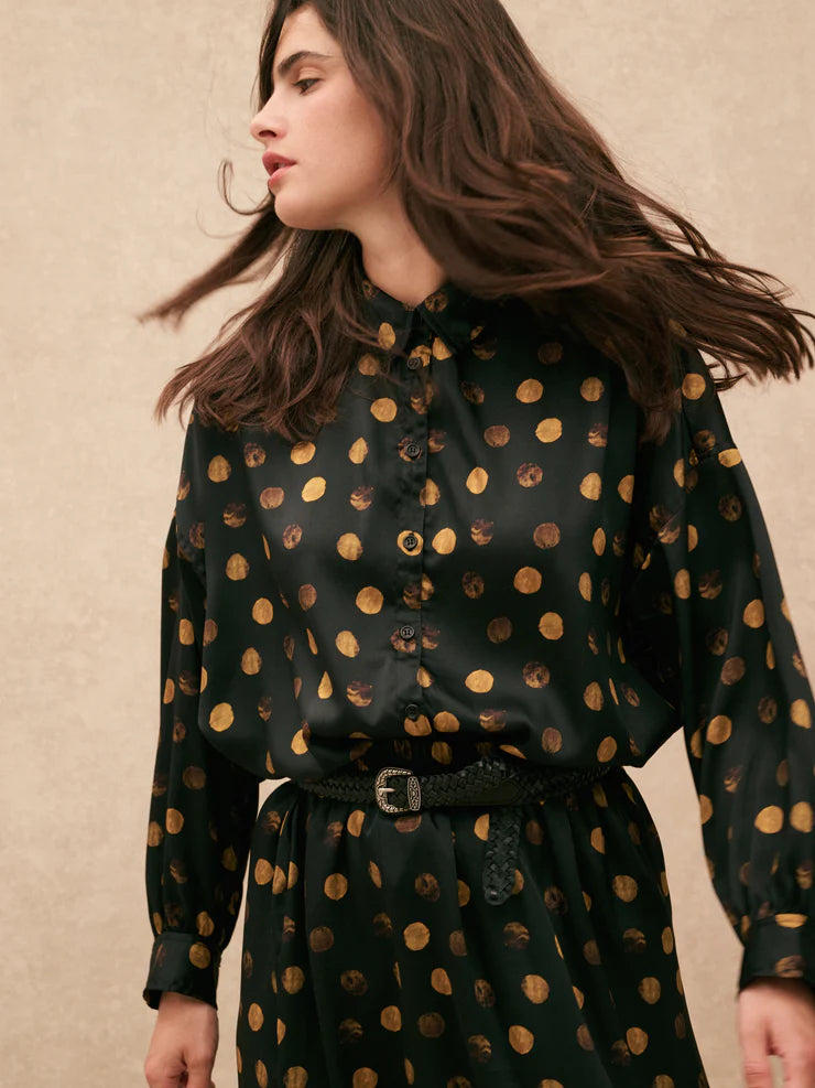 Camicia a maniche lunghe con giromanica basso. Ha un fascino falsamente maschile. Il taglio è leggermente oversize e presenta arricciatura alla base della manica.