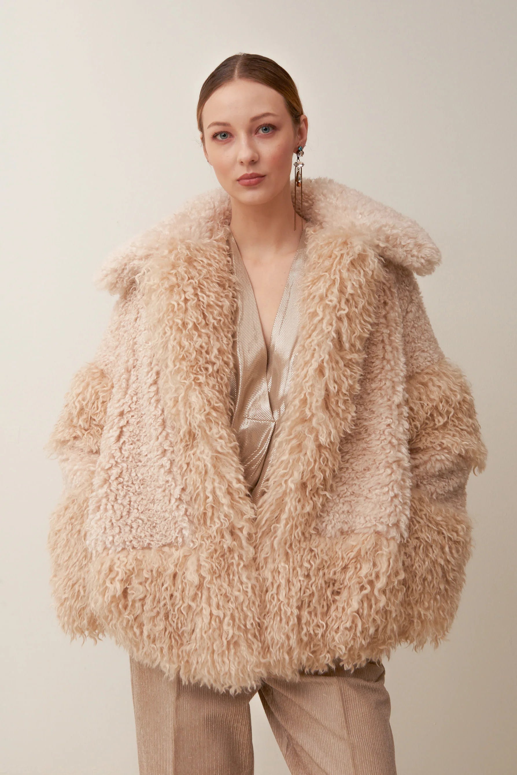 Eco-pelliccia corta con dettaglio pelo a doppia lunghezza.
